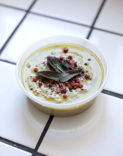 Fresh parsley, toasted sage, and roasted garlic come together to create a vibrant savory twist. Topped with hand foraged local pink peppercorns, sumac, and crispy sage leaves. Truly next level.