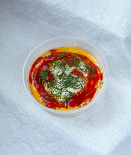 Two of your favorite dips collide! This epic hummus stars homemade ranch sauce made straight from the farmers' market. Fresh herbs & smoked crema are finished with mildly spicy special wing sauce & dill weed. The pairing you never knew you wanted. *Contains dairy.