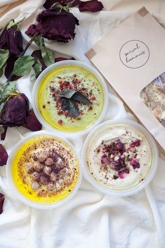 2. Truffle & Rose Petal - Can we say LUXURY? Taking hummus to new levels, this dreamy blend of white and black truffle, topped with edible dried rose petals, is the pinnacle of decadent, romantic, desire. Your taste buds will thank you.