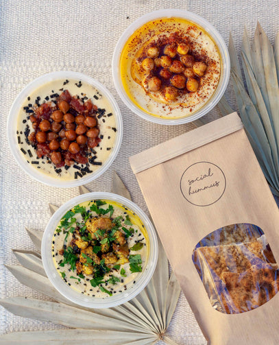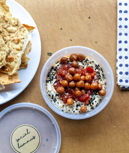 *Social Hummus is plant-based, preservative-free, dairy-free, gluten-free, nut-free, soy-free, kosher, and made with heirloom chickpeas from Rancho Gordo.