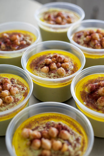 Hosting a gathering? Just want to dig in & eat a giant container of whipped hummus yourself? Want to feed it to your family with dinner? We are now offering a large size of hummus base so you can put in pretty bowls & serve it as your own. We encourage you to get creative & add all the fun toppings. Use it as your playground.